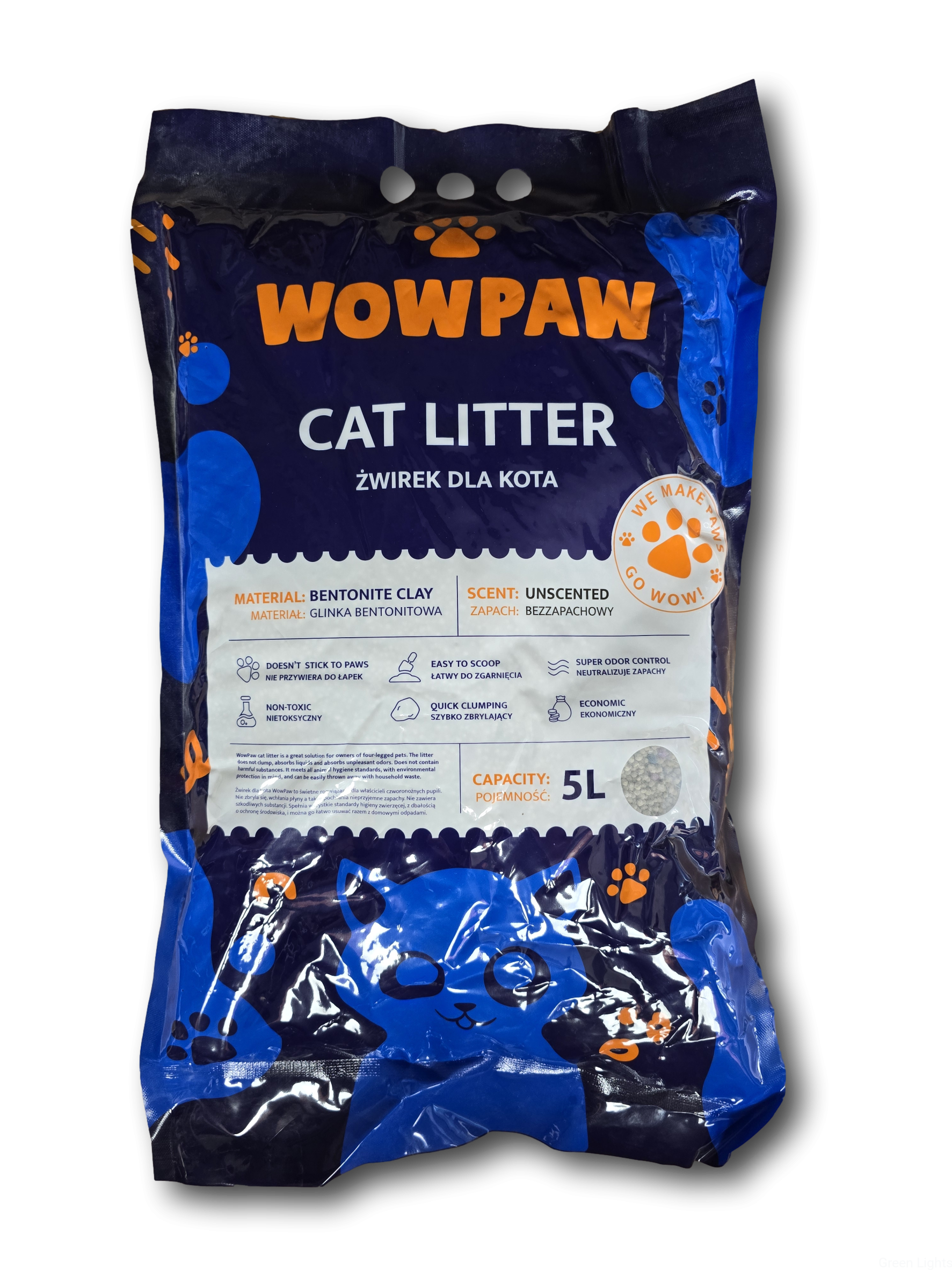 Żwirek dla kota bentonitowy bezzapachowy 5L WowPaw