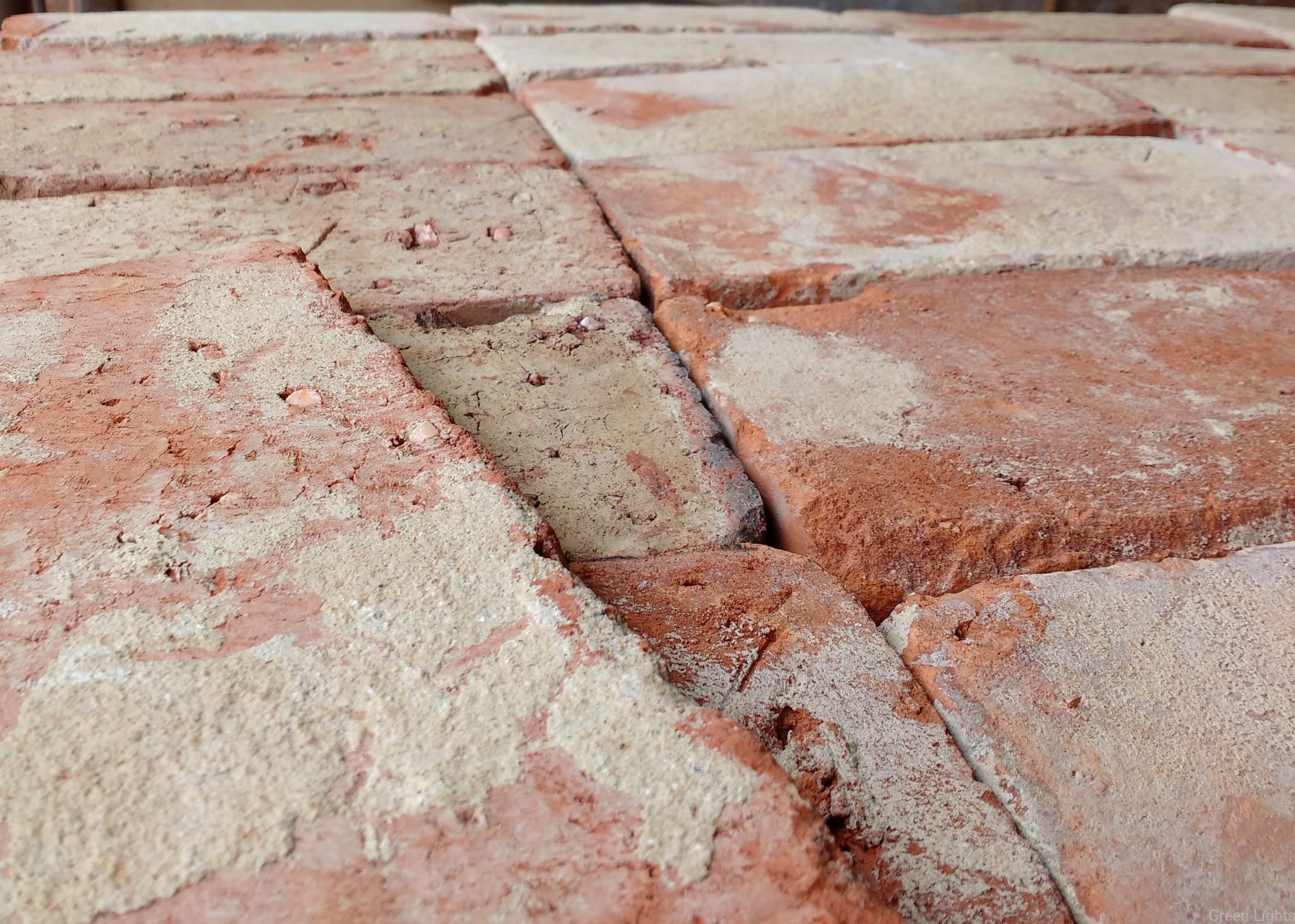 Płytki podłogowe cięte ze 100 – letniej rozbiórkowej cegły.