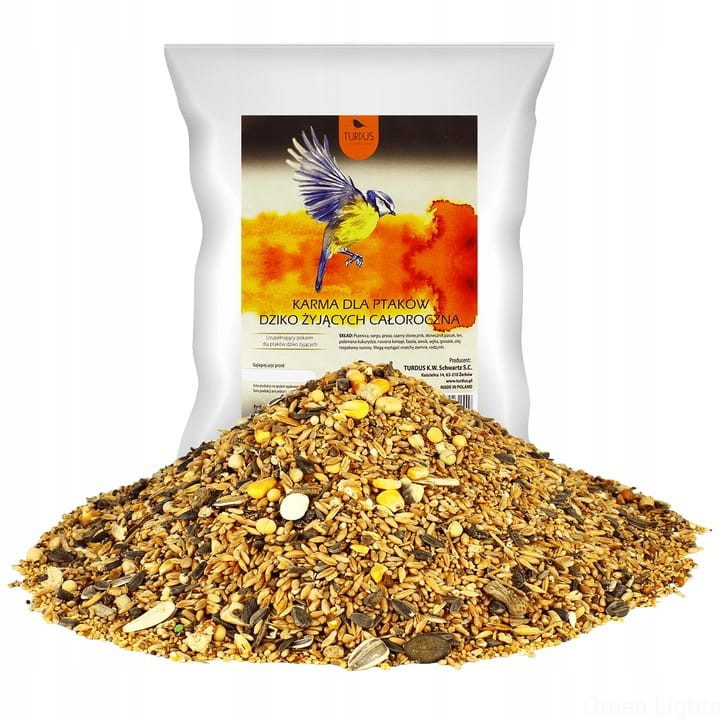 Mieszanka ziaren, zbóż, tłuszczów, roślin i innych naturalnych składników to idealny sposób na dokarmianie ptaków, głównie w okresie ograniczonej dostępności pokarmu (np. w zimie).