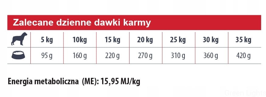 Energia metaboliczna: 15,95 MJ (3 809 kcal/kg)