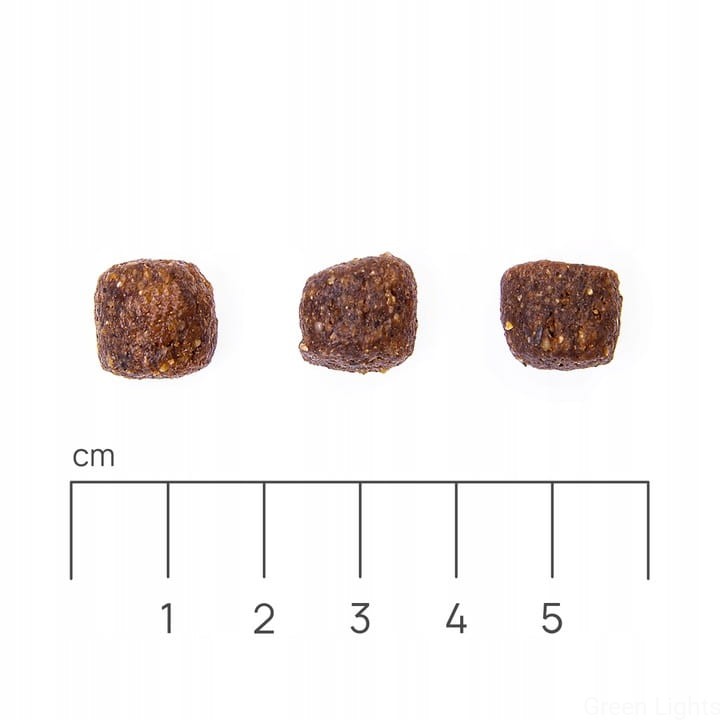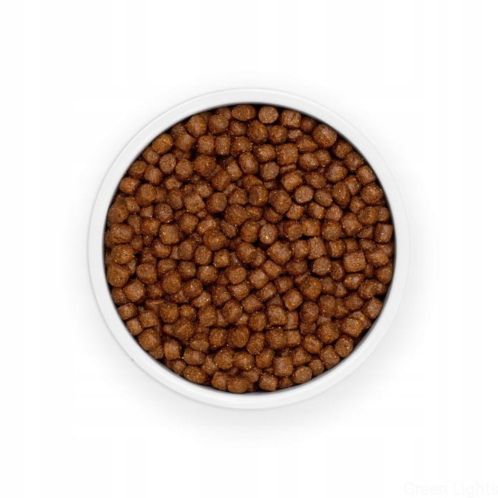 Skład: kukurydza, mączka drobiowa (21%), groch, sorgo (7%), ryż, suszone jabłka (3%), błonnik roślinny, siemię lniane, tłuszcz drobiowy, hydrolizowane wątróbki drobiowe, psyllium, CLA - sprzężony kwas linolowy (0,5%), olej kokosowy, MOS (mannanooligosacharydy), FOS (fruktooligosacharydy), beta-glukany, tauryna, L-karnityna, kompleks ziołowy (pokrzywa, owoc anyżu, Yucca schidigera 0,032%), glukozamina, siarczan chondroityny, kurkuma, zielona herbata, dodatki (witaminy, mikroelementy, aminokwasy).