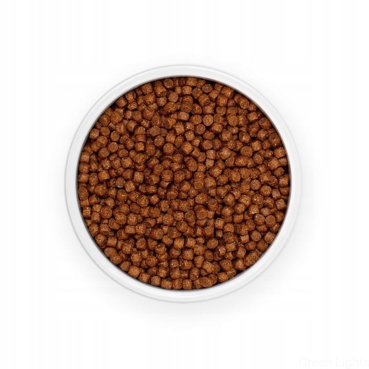 Skład: mączka drobiowa (36%), kukurydza, tłuszcz drobiowy, sorgo (8%), białko kukurydziane, ryż, suszone jabłka (3%), hydrolizowane wątróbki drobiowe, siemię lniane, wysłodki buraczane, olej kokosowy, MOS (mannanooligosacharydy), FOS (fruktooligosacharydy), betaglukany, kompleks ziołowy (pokrzywa, owoc anyżu, Yucca schidigera 0,032%), dodatki (witaminy, mikroelementy, aminokwasy).