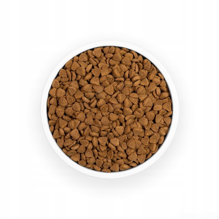 Skład: ryż, dehydrowane mięso wieprzowe, kukurydza, hydrolizowane białka (ryby, drób), siemię lniane, błonnik roślinny, babka płesznik, tłuszcz drobiowy, betaglukany, tauryna, mieszanka ziół i alg (pokrzywa zwyczajna, jeżówka purpurowa, Ascophyllum nodosum, Chlorella), prebiotyki (MOS, FOS), L-karnityna, glukozamina, siarczan chondroityny, substancje uzupełniające (witaminy, mikroelementy, aminokwasy