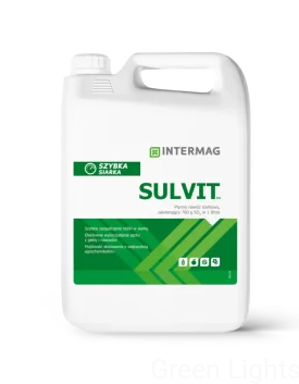 SULVIT™ to płynny, wysoko skoncentrowany nawóz siarkowy (760 g SO3 w 1 litrze) przeznaczony do dolistnego dokarmiania roślin lub do stosowania doglebowo łącznie z płynnymi nawozami azotowymi (np. RSM).