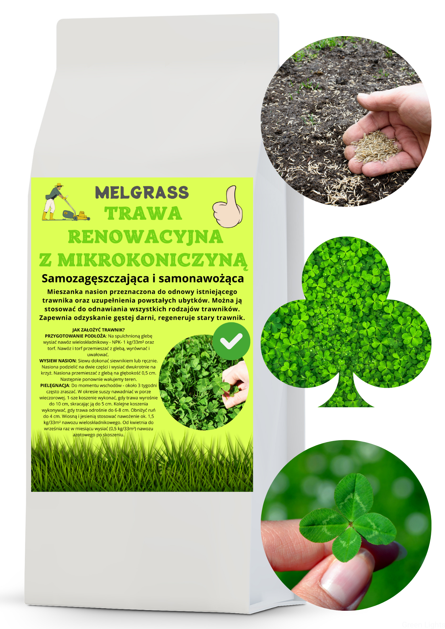 Trawa renowacyjna z mikrokoniczyną o szerokim zastosowaniu oraz wysokiej odporności na zmienne warunki atmosferyczne. Trawa Melgrass charakteryzuje się intensywnością krzewienia, wzrostem oraz wysoką odpornością na uszkodzenia mechaniczne. Mieszanka skomponowana aby trawnik był reprezentatywny, gęsty i cieszył oko właściciela :)